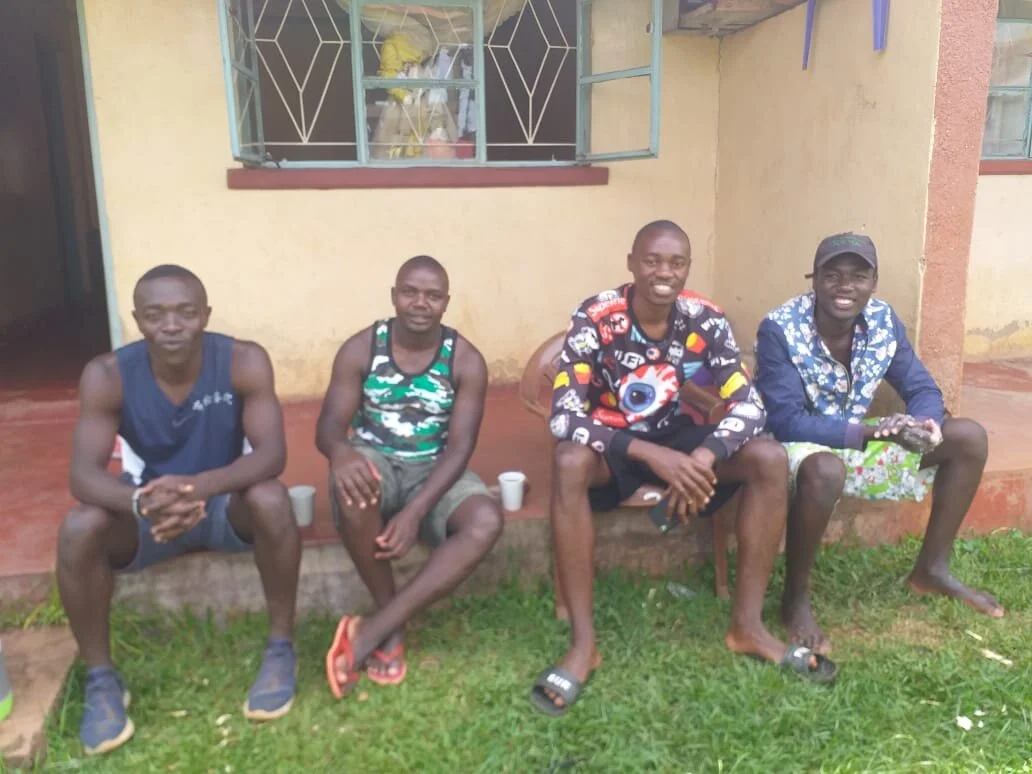 Kevin, Kemboy, Rodgers, Elphas in front of Fellowship House